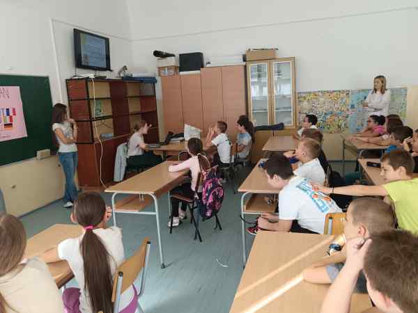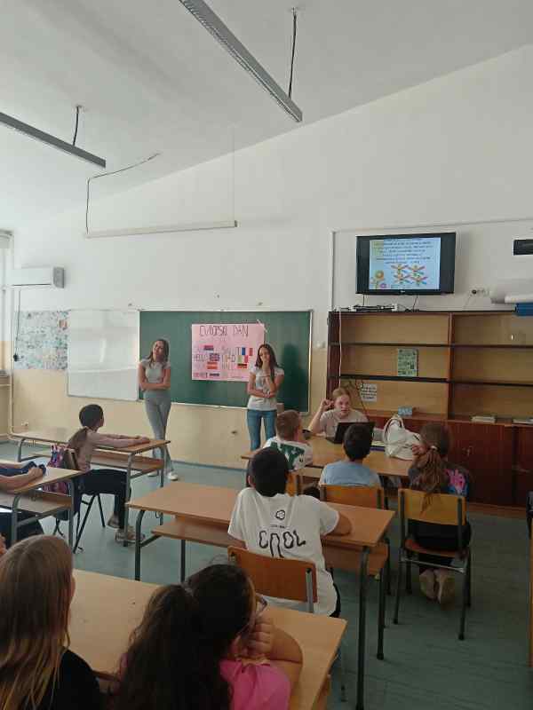 И овог 26. септембра Европа слави своју језичку разноликост, а наша школа се прикључила овој прослави спроводећи бројне активности. Будући да се у нашој школи изучавају енглески и шпански језик као страни језици, мноштво је занимљивости и паралела које су направљене између српског и ова два страна језика. Чланови Вршњачког тима и Ученичког парламента направили су пано и презентацију о Европском дану језика. Ученици петог разреда наше школе били су наши гости, стекли нова знања и научили да Европски дан језика слави вишејезичност, интеркултуралност, толеранцију, отвореност и радозналост према другом. Учествовали су у изради паноа,бојили заставе различитих европских земаља и учили поздраве на језицима тих земаља. Ученици су упознати са европском породицом језика чији саставни део је и наш језик. Пројекат реализовали чланови Стручног већа страних језика, чланови Вршњачког тима и Ученичког парламента.